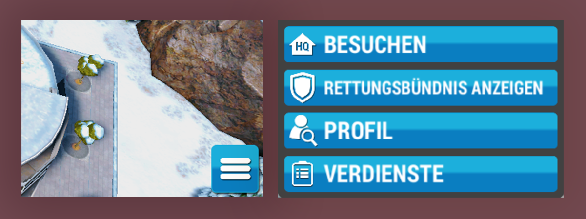 • Tippe während eines Basisbesuchs auf die Kachel mit den drei Linien unten links und wähle dort Verdienste aus.